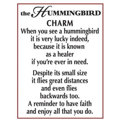 Celebrate the beauty of the Hummingbird Charm! This delightful charm comes with an inspiring card: "When you see a hummingbird, it is very lucky in...