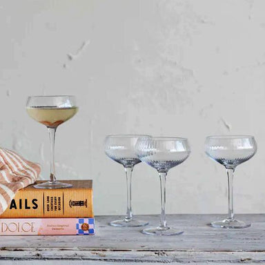 Raise a toast in style with our 8 oz. Stemmed Champagne/Coupe Glass. Crafted from hand-made glass, this coupe glass features a ribbed vintage desig...