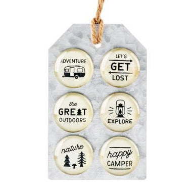 Explore the great indoors with our Camping & Adventure Text Magnet Set! Featuring 6 beautifully designed glass magnets on a galvanized metal bo...